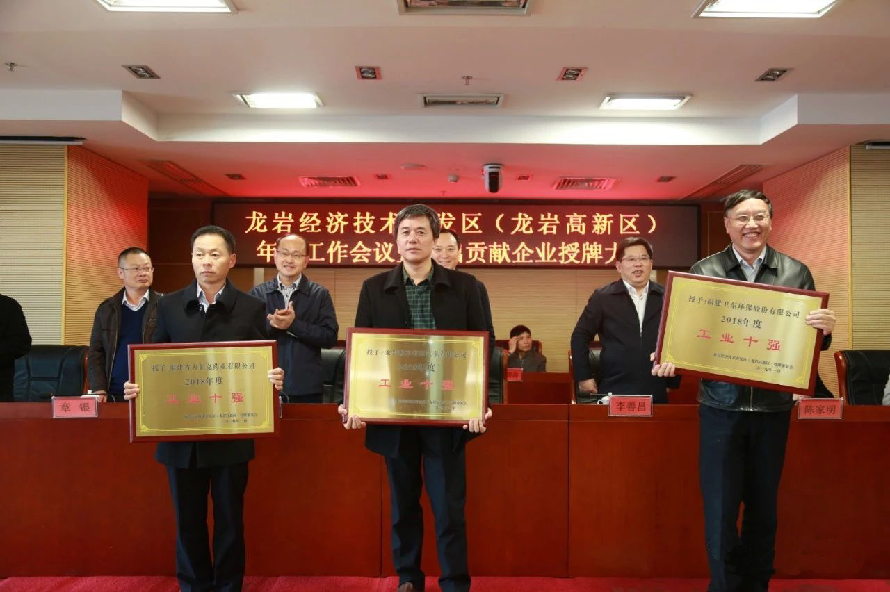 1月24日,龍巖經開區(高新區)召開年度工作會議暨突出貢獻企業授牌大會。我司榮獲“工業十強”榮譽稱號。公司董事長卞永巖出席會議并領獎。
