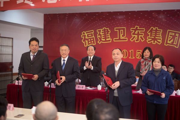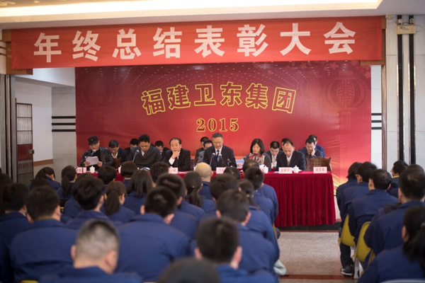 新的一年,新的征程,新的祝福,新的希望。2016年1月29日福建衛東集團“2015年總結表彰大會”在隆重召開。集團各事業部、各子公司、各職能部門四百余名職工工參加會議,集團董事長邱一希、總經理卞永巖在會上分別并做了重要講話。 卞永巖總經理對2015年集團的發展情況做了全面總結,對各事業部的經營情況進行了點評,對業績突出的部門及個人給予充分肯定。并對2016年集團工作進行了部署。卞永巖總經理強調,2016年,我們應當始終保持清醒的頭腦,切實增強憂患意識和風險意識,在市場經濟整體不景氣的局面中發現有利因素,在變化的形勢中把握發展機遇。同時,2016年要切實加強內部管理和人才梯隊建設工作,為保障集團良性、持續發展提供不竭動力。