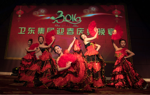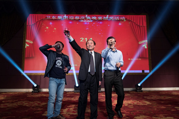 當晚,集團在榮譽國宴酒樓舉辦盛大的迎新晚宴,邀請長期關心和支持衛東事業的領導及朋友,歡聚一堂,共敘發展。新年新氣象,擁有各種創意思維的晚宴可謂更“新”一籌。節目形式上來看,整場晚會節目精彩紛呈,創意無限。中間穿插的豐富抽獎環節更是不斷地掀起晚宴的高潮。